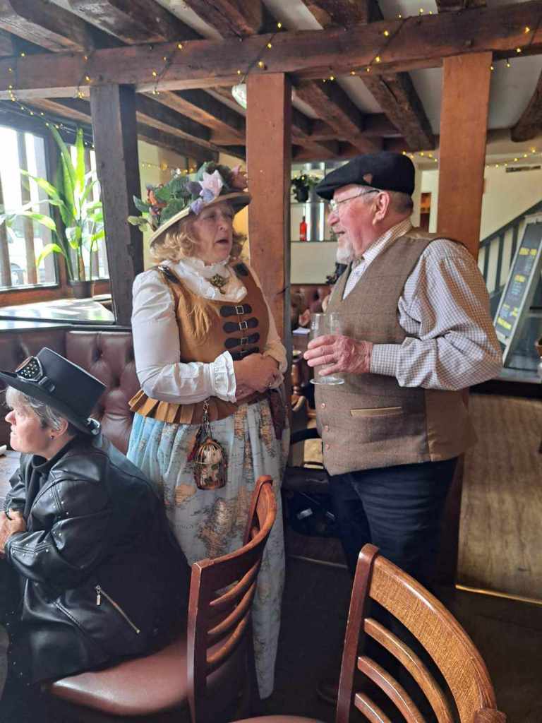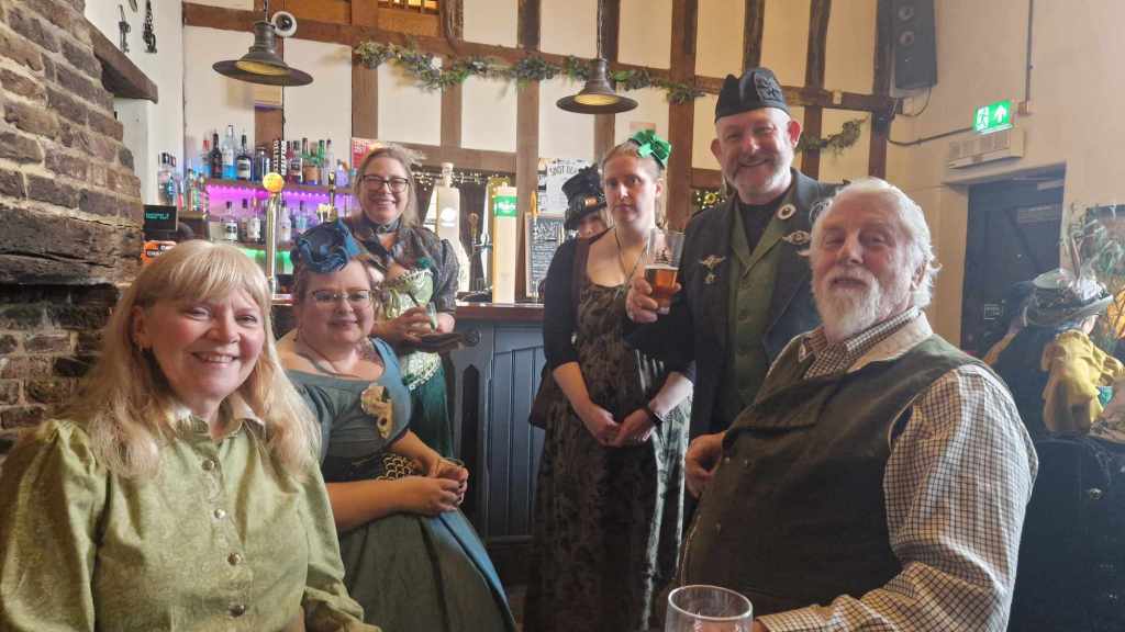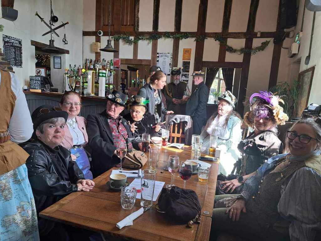 On the third Sunday of each month, at Midday ‘till 3pm, the magnificent members of Kings Lynn Steampunk Society gather in our splendid gear at The Wenns Chop & Ale House. There is no dress code and no fixed agenda, people are free to come and mix as they please. From catching up with old friends, and making new ones, to planning new projects with the amazing ladies of our Crafting Guild, our meet ups are a great place to dip your toes in varied and friendly world of steampunk.